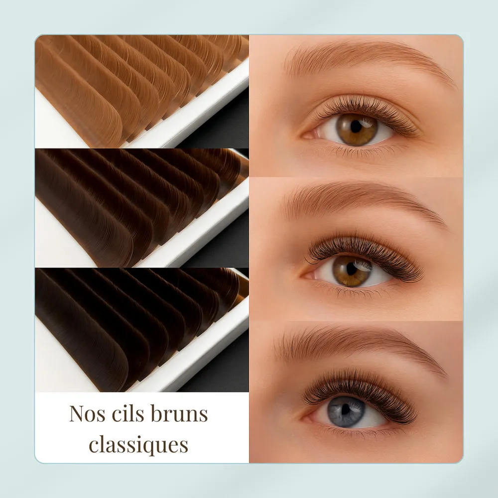 Offre à tes clientes un regard doux, naturel et parfaitement adapté à leur carnation grâce à notre collection de cils bruns en 3 nuances sur mesure. Conçus pour les techniciennes qui recherchent à la fois performance, douceur et rendu ultra naturel, ces cils sont fabriqués avec une fibre de qualité supérieure, semi-lustrée (soie), pour une pose fluide et un fini impeccable.